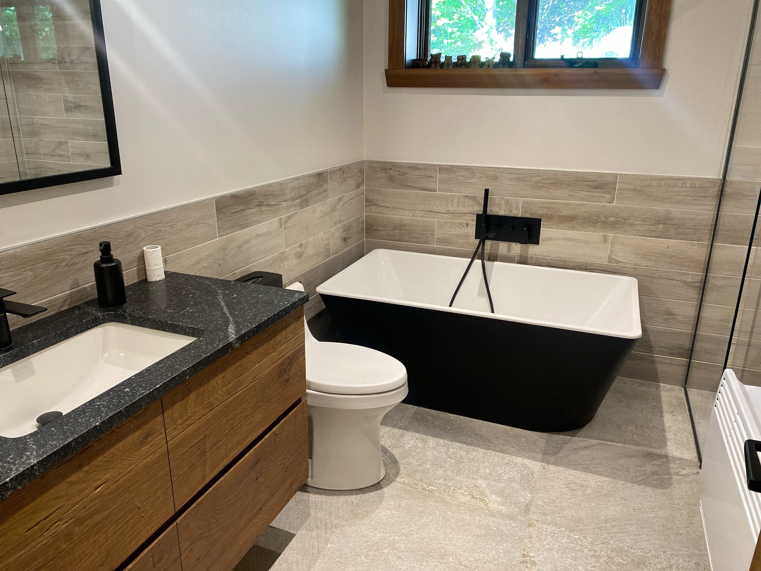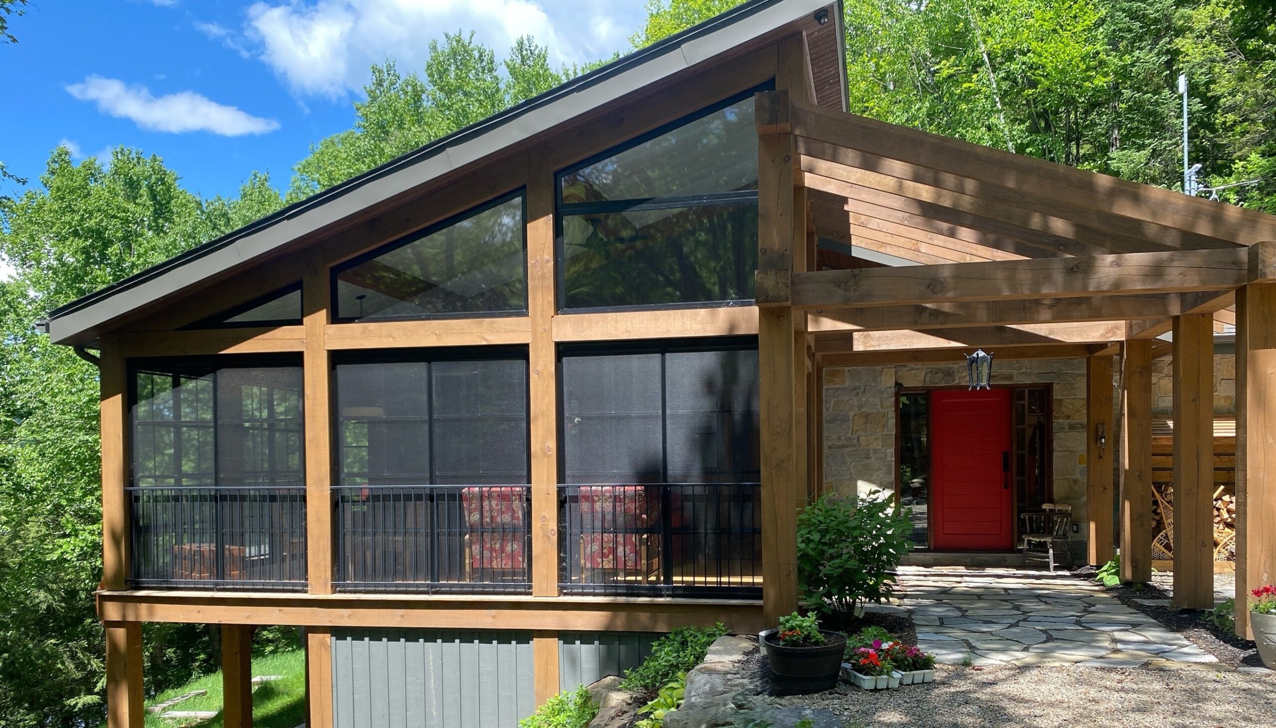 Ce petit chalet des années 60 est niché au bord d’un lac majestueux, dans un environnement soumis à une réglementation stricte. Le mandat consistait à le transformer pour le rendre confortable et fonctionnel. Face aux restrictions d’agrandissement imposées par la municipalité, malgré un terrain immensel, notre équipe a conçu des solutions innovantes pour optimiser les espaces intérieurs. L’ajout stratégique d’un espace trois saisons a non seulement augmenté la surface habitable, mais a aussi enrichi le caractère du chalet.