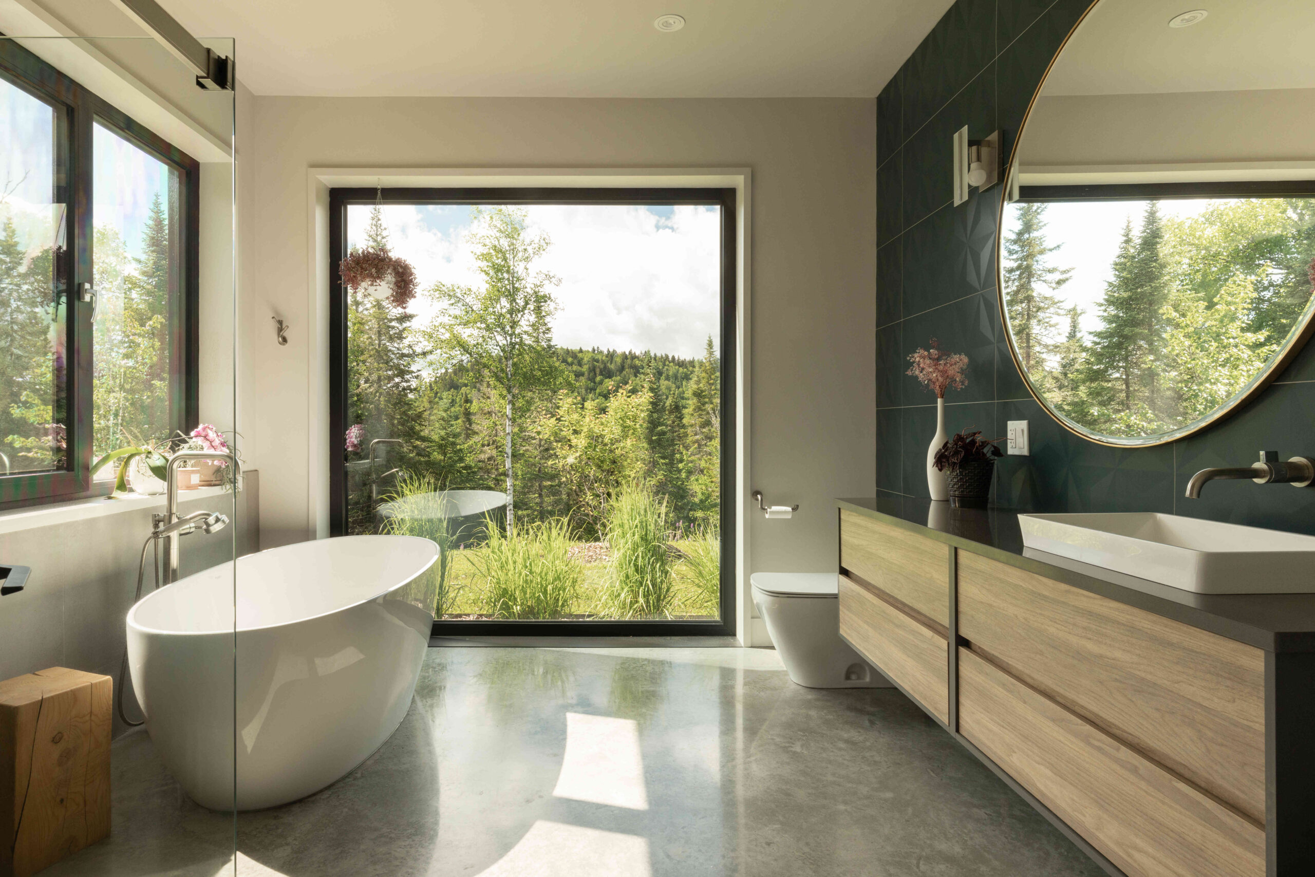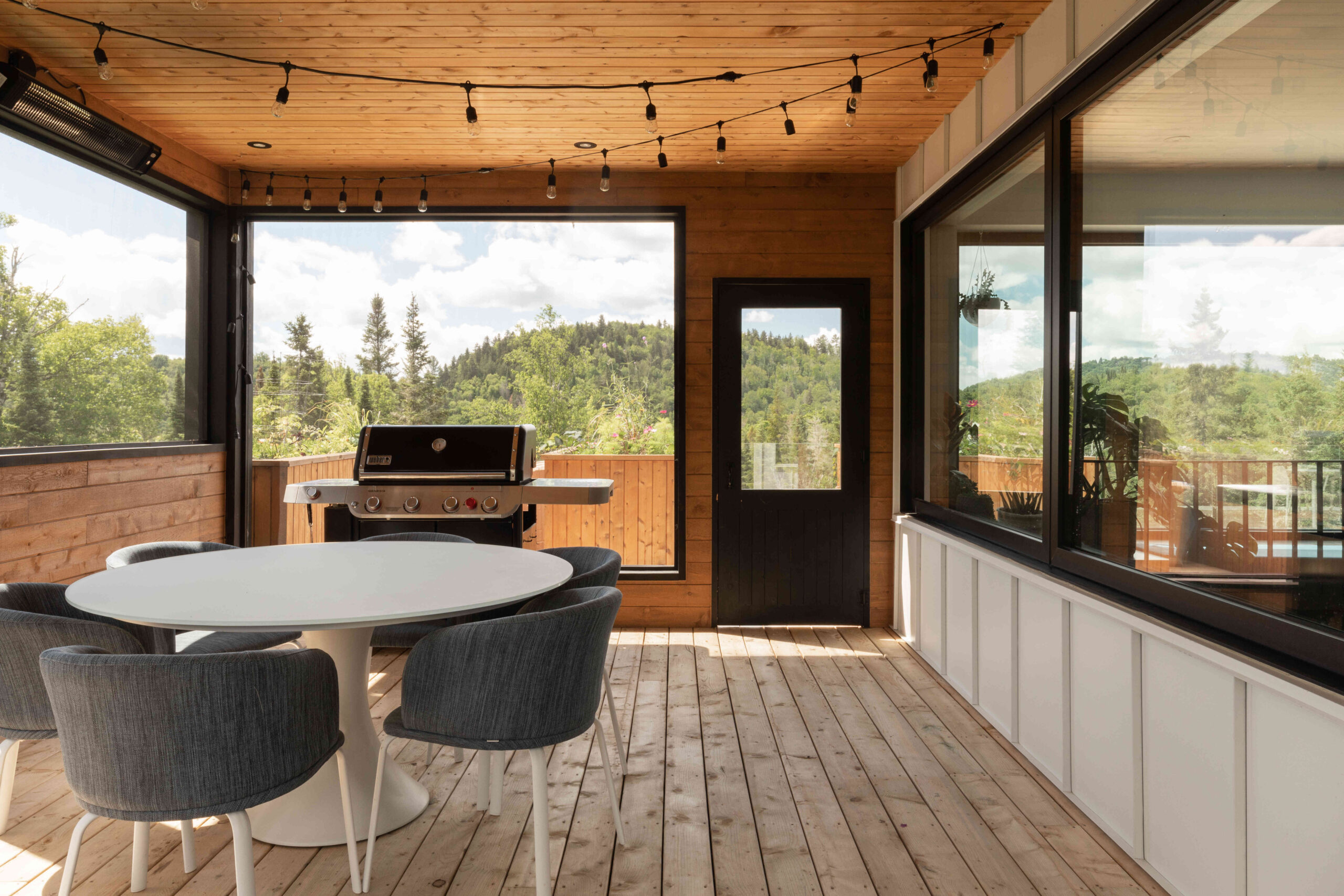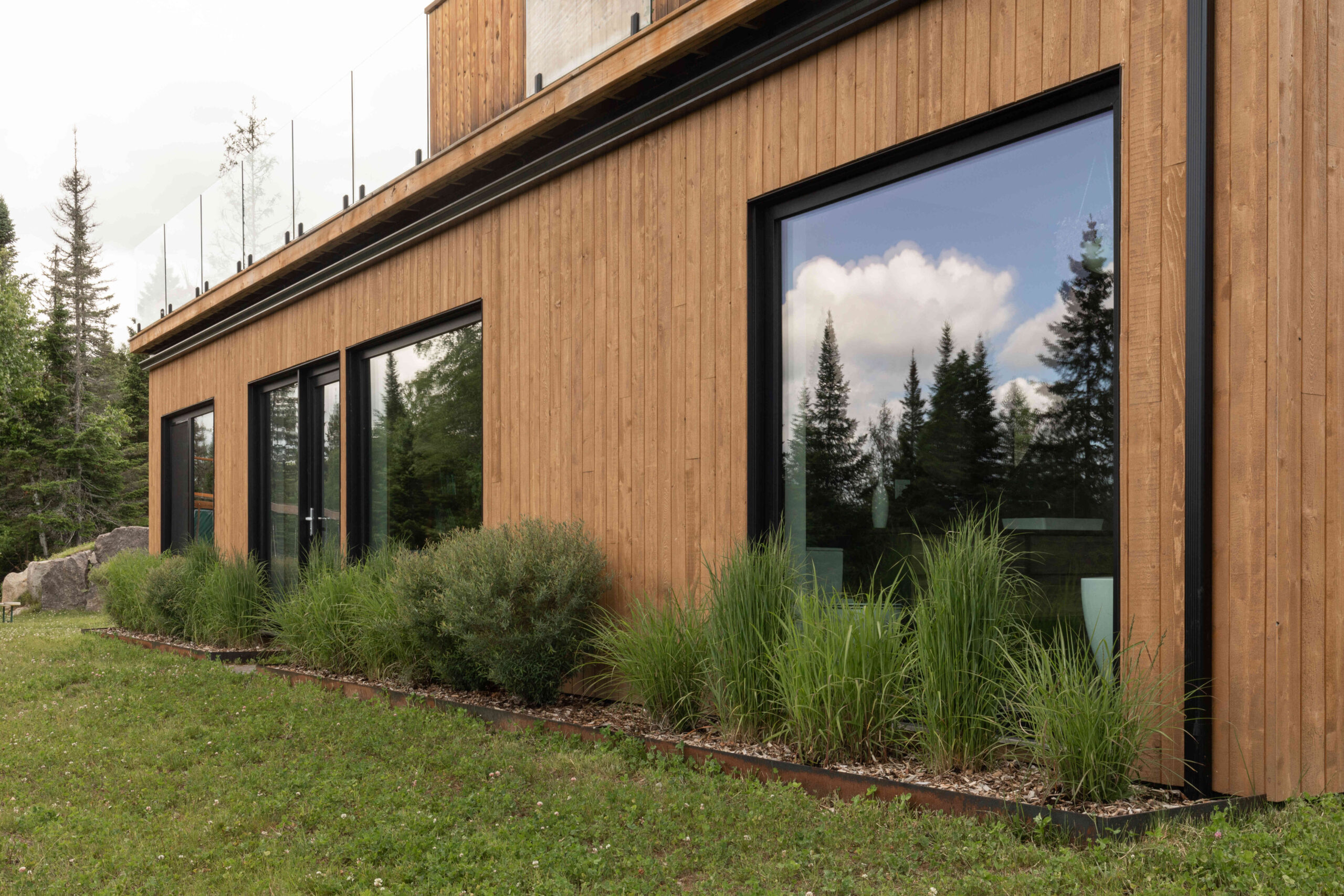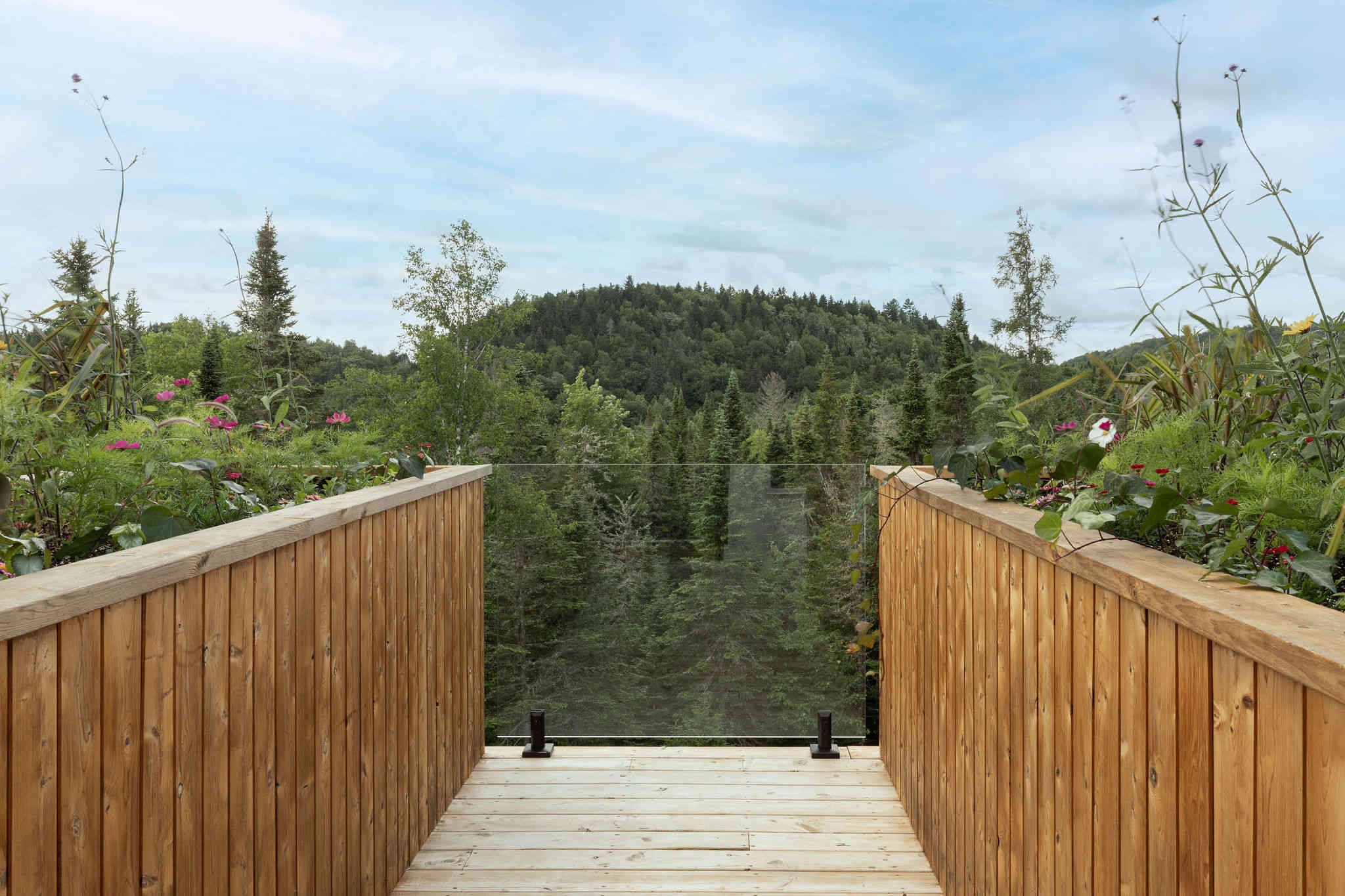 Dès l’entrée, le regard est immédiatement captivé par la vue spectaculaire. La nature est omniprésente, magnifiée par les nombreuses terrasses, la véranda et le jardin de toit.