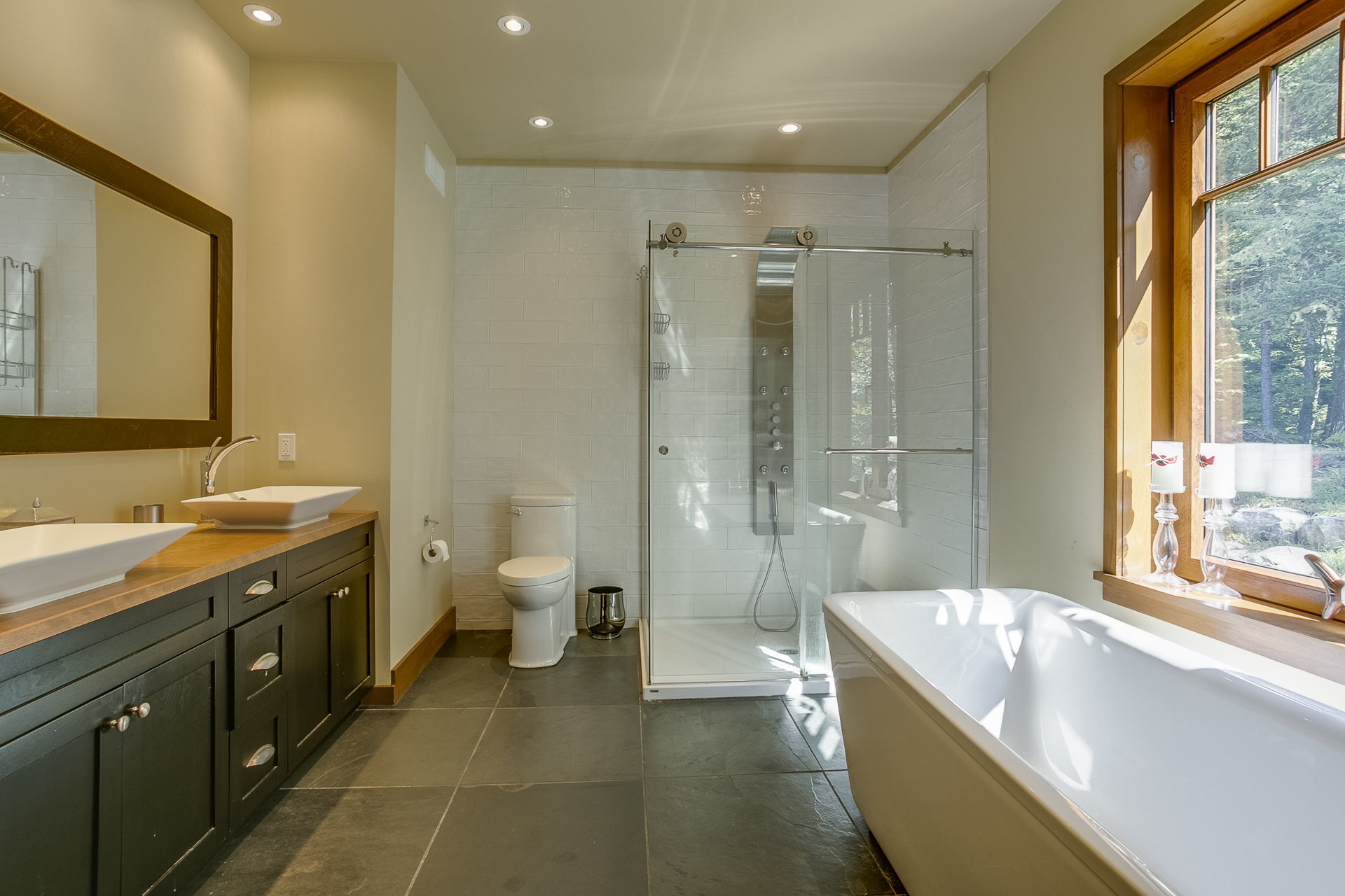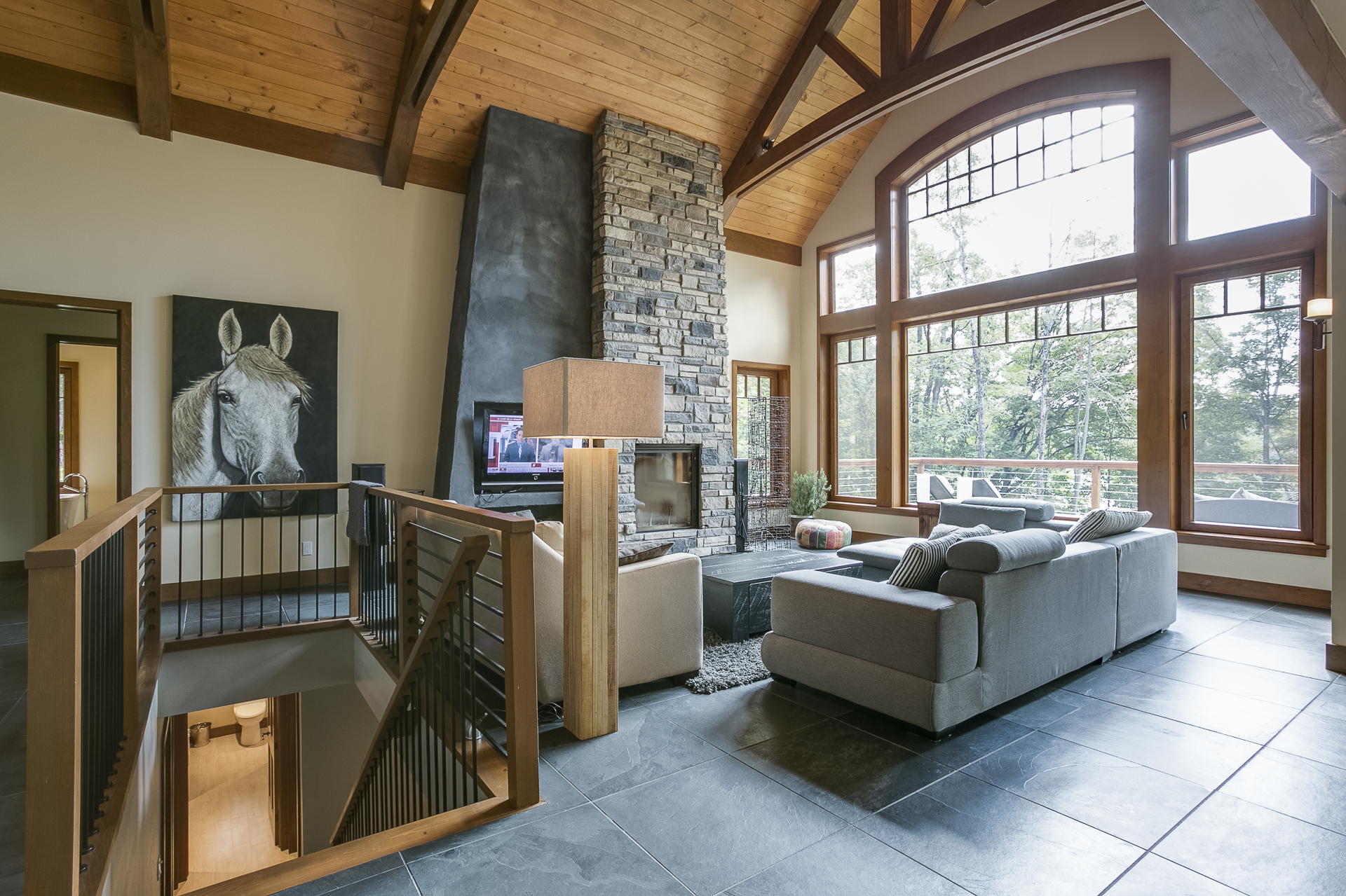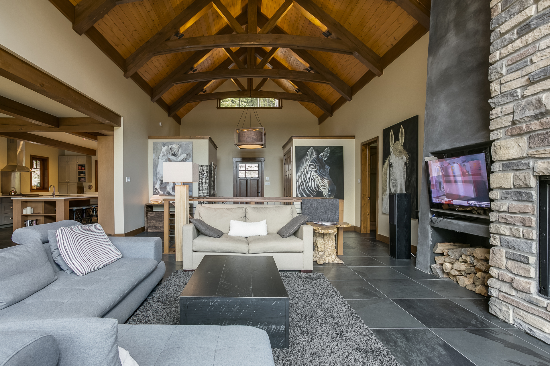 Pour cette nouvelle construction, le mandat consistait à marier une architecture traditionnelle de Tremblant avec un design intérieur résolument contemporain. Les matériaux traditionnels ont donc été intégrés à une structure plus épurée.