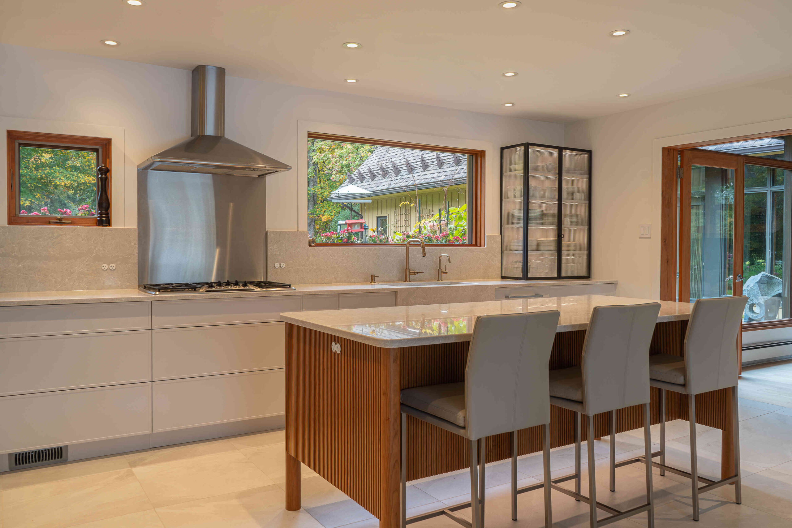 Cette résidence nécessitait une rénovation complète, plus de deux décennies après les derniers travaux majeurs. Nos clients désiraient épurer le design du rez-de-chaussée et moderniser la cuisine afin de créer un concept intemporel en parfaite harmonie avec l’architecture existante de la maison.