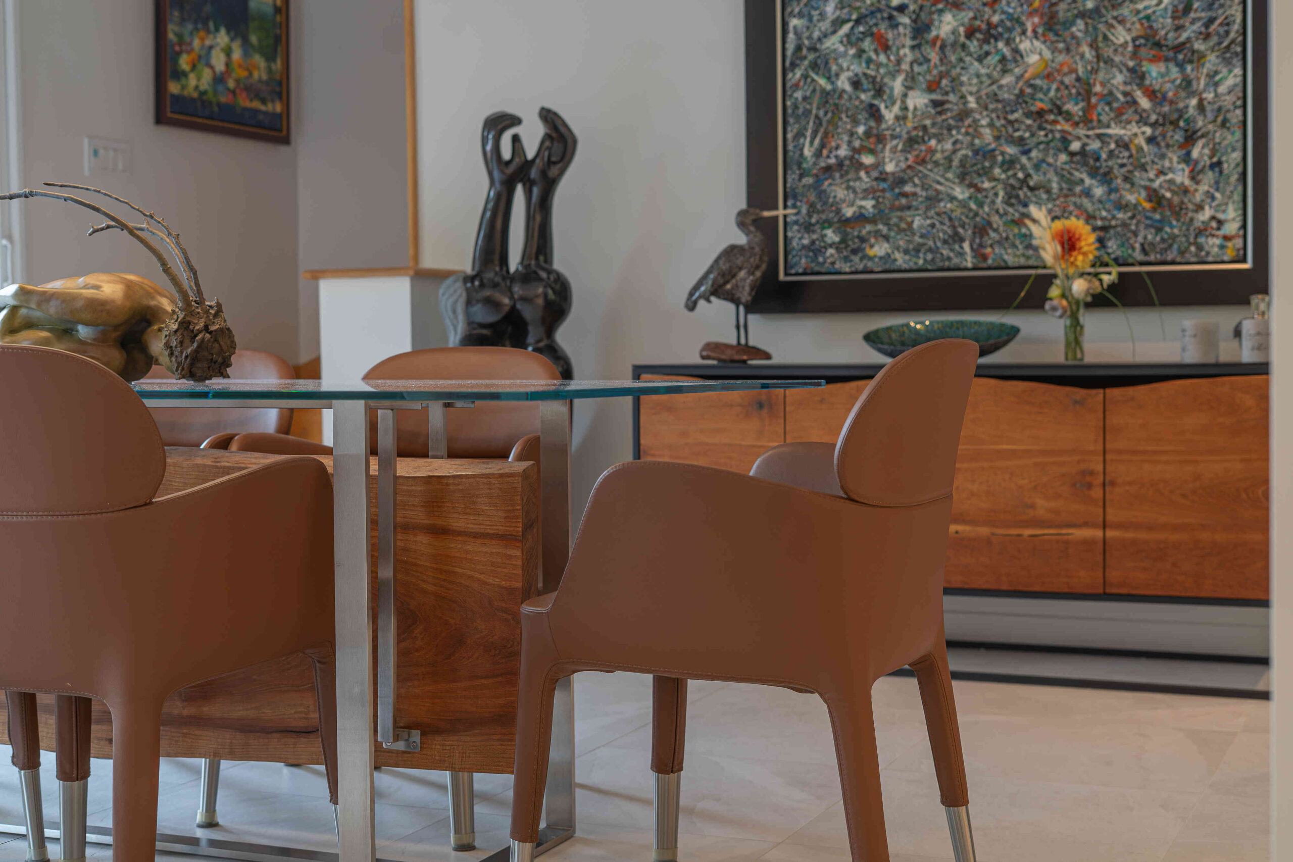 Le mobilier de la salle à manger, réalisé sur mesure par un artisan, a été conservé et a servi de point de départ pour l’aménagement de l’aire ouverte.
