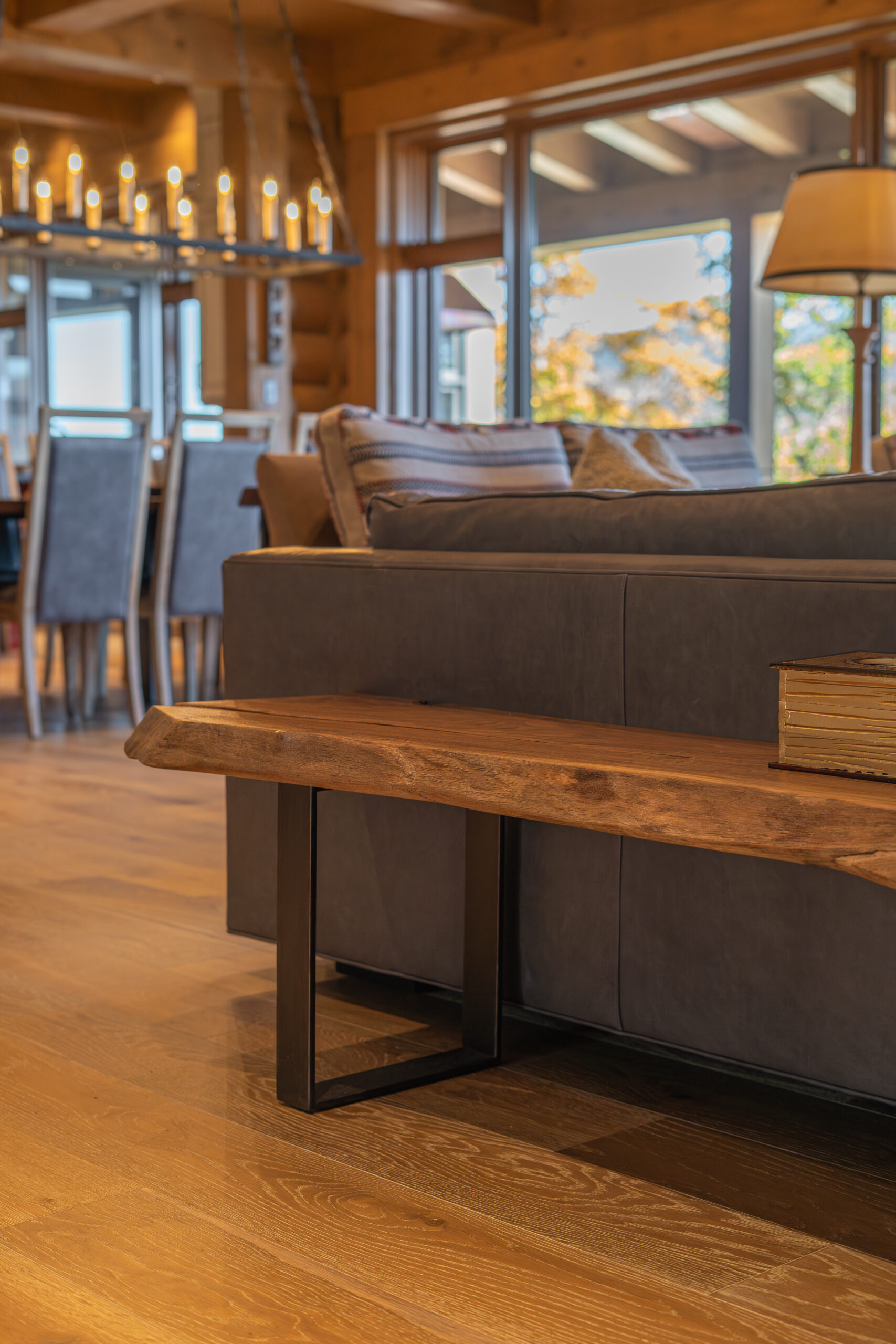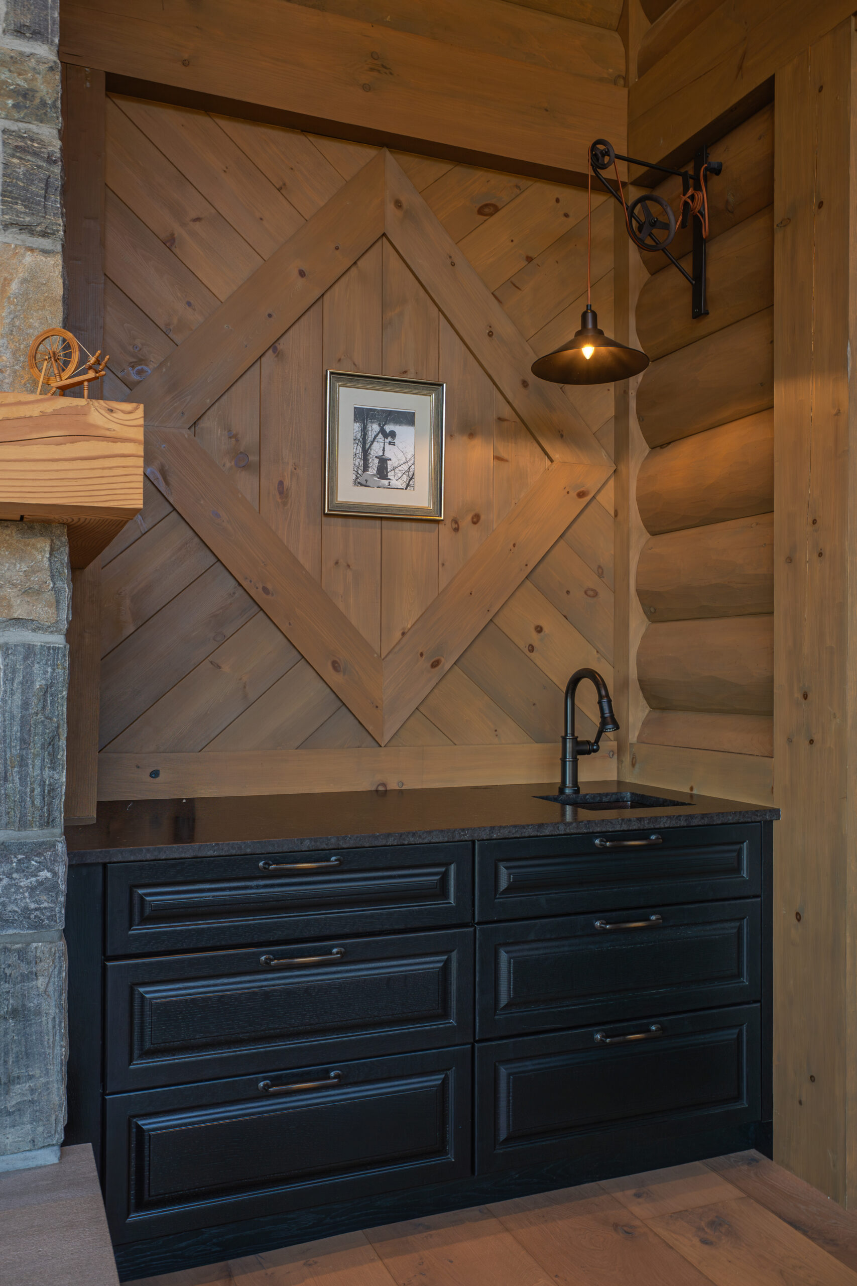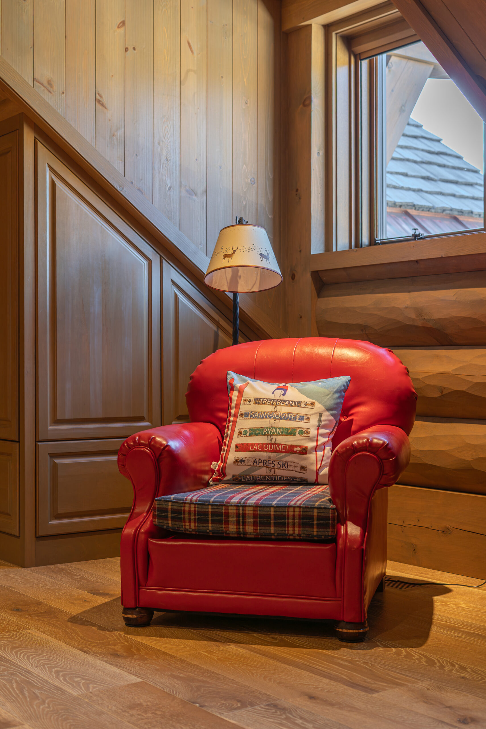 Notre mandat consistait à réaliser l’aménagement intérieur complet de cette résidence, principalement utilisée en hiver. L’objectif était de créer l’atmosphère rustique et chaleureuse des maisons de bois rond traditionnelles..